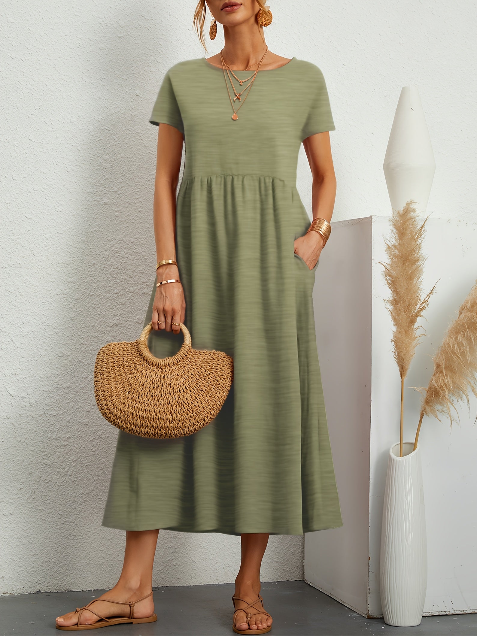 The Bianca Stylish Casual Midi Dress is your go-to for a perfect blend of casual elegance and easy comfort.
