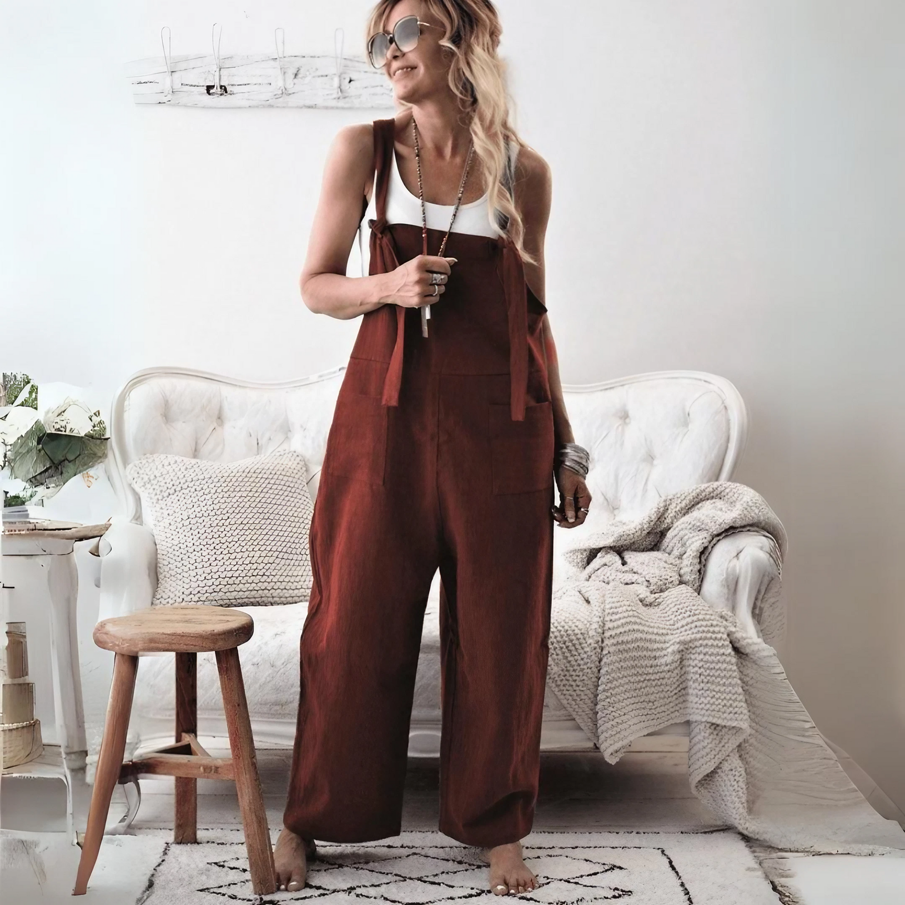 Scarlett™ - Casual Loose Cotton Linen Solid Pockets Jumpsuit